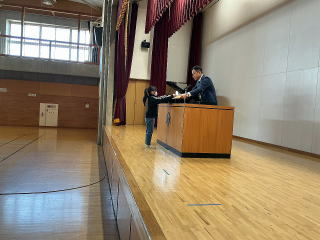 がんばった子どもたちへ、校長先生から「前期の頑張りが、次の自分につながる。後期も頑張りましょう。」というお話がありました。