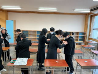 その後、津波が起きたことを想定して、垂直避難の訓練、教室へ戻って引き渡し訓練を行いました。
